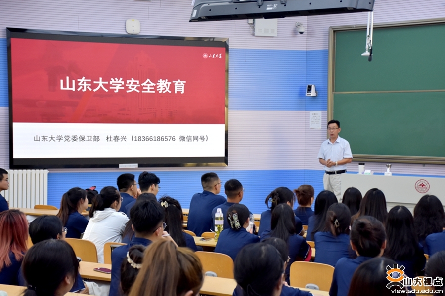 聚焦底线意识,讲好“法纪安全”警示课。学院邀请公安处杜春兴老师开展“法纪安全教育”专题讲座,他结合真实案例,从基础安全知识、火灾常识、校园火灾预防、常见消防设施、实验室安全、电动车安全、预防电信诈骗、交通及出行安全、网络安全、用电安全、公共场所安全、心理健康安全和国家安全等十三个方面针对如何应对突发事件,并现场演示灭火器的使用方法,教会同学们面对险情的处置方法,强化同学们的安全意识。此外,研究生辅导员徐姗姗为新生解读研究生手册中的相关规章制度和管理规定,结合实际案例告诫同学们要做遵规守纪山大人。