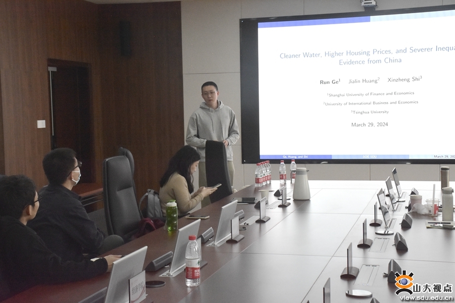 [本站讯]3月29日,经济学院第二十四期宏观经济与金融论坛在中心校区举行,上海财经大学公共经济与管理学院研究员葛润作主题为“Cleaner Water,Higher Housing Prices,and Severer Inequality: Evidence from China”的报告,会议由经济学院教授姜明明主持,学院部分师生参加讲座。