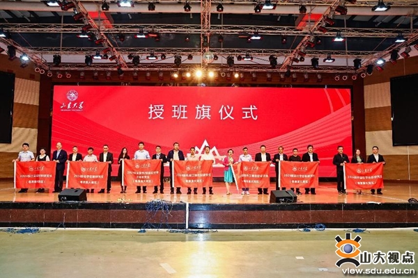 典礼上还举行了新生入学宣誓、授班旗和优秀学生颁奖仪式,现场学子共同唱响山东大学校歌。