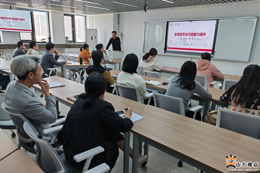 [本站讯]为进一步提升学院教职工管理服务与行政能力水平,提高教职工综合业务水平,4月11日下午,历史学院、考古学院与博物馆举办行政能力提升专题讲座,邀请学校机关党委常务副书记、党委组织部副部长张伟主讲,“两院一馆”新提任领导班子成员、各学系主任、教工党支部书记、部分教师及全体机关工作人员、博物馆工作人员参加活动。