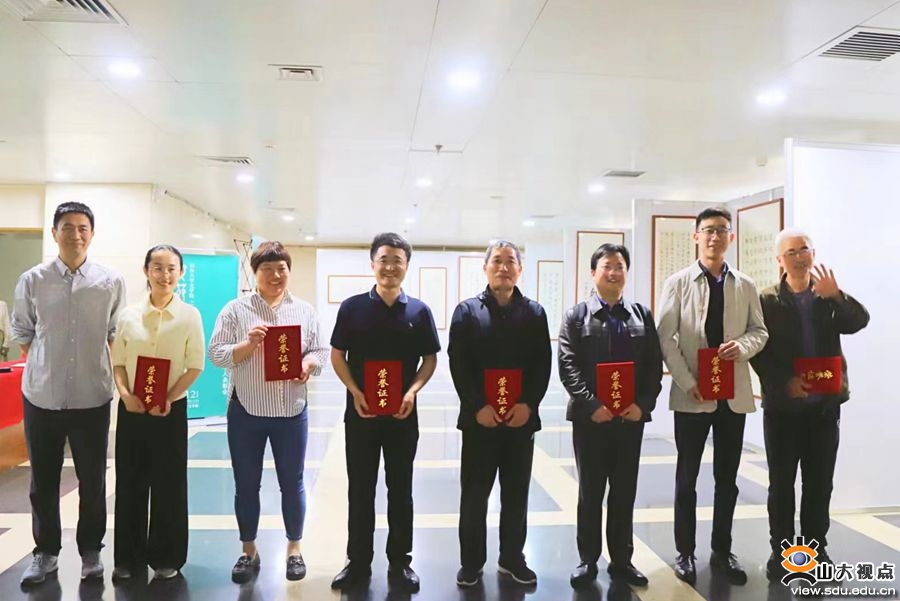 [本站讯]为弘扬和传承中华优秀传统文化,赓续学院文脉,展现新时代新征程文学院教职工精神风貌,4月12日,文学院于知新楼举办“文苑艺廊”书画展揭幕仪式暨工会先进个人表彰会。文学院徐超、龚鹏程、唐子恒等教师,山东大学工会妇委会主任、工会副主席罗建军,文学院党委书记郭春晓,常务副院长马兵,党委副书记王萌、杨俊娇,部分教职工与学生参加活动。学院专职组织员兼工会主席沈文主持活动。