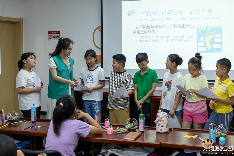 “小蓝帽”山东大学保河护海志愿服务队携手“蚂蚁力量”儿童义工团,开展“环保科普校园行”活动,通过互动问答和科普实验模拟,进行多方面的环境保护知识宣讲;山东大学“初光”支教与环保宣讲团面向即墨区3个街道14个社区,设计多元化课程,为322名孩子搭建起了一个个充满希望的学习与成长平台;赴甘肃等五地关于可持续发展政策理念宣讲团以“绿色乡村青年行动”为基础,将复杂的环保知识与政策理念转化为易于理解的语言和实践活动。环保宣讲社会实践的广泛开展,根植环保理念,激发了儿童对环境保护的兴趣与热情,引导孩子们将绿色生活融入日常,为构建人与自然和谐共生的美好未来贡献青春力量。
