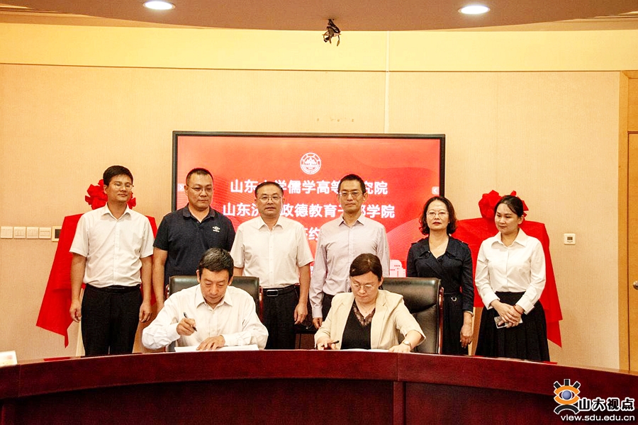 [本站讯]9月25日,山东大学儒学高等研究院与山东济宁政德教育干部学院战略合作签约揭牌仪式在山东大学中心校区知新楼举行。此次签约充分发挥山东大学儒学高等研究院学术资源优势和山东济宁政德教育干部学院特色培训优势,达成了在搭建研究实践平台、阐发理论研究、打造优质课程、人才培养方面的合作,标志着双方在推动中华优秀传统文化“两创”“两个结合”方面迈出了坚实的一步。
