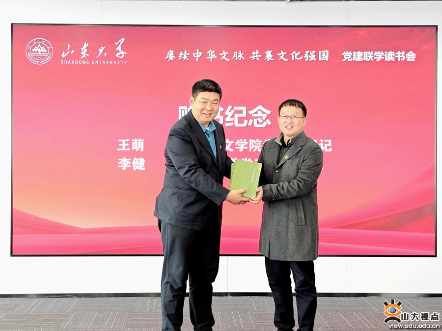 赠书仪式上,文学院党委副书记王萌代表学院向山大路街道赠送《山东大学文学院史料丛编》。山大路街道党工委副书记、政协委员联络室主任李健代表街道接受赠书。