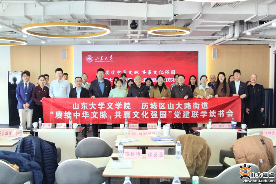 [本站讯]12月13日上午,由山东大学文学院和历城区山大路街道联合主办的“赓续中华文脉,共襄文化强国”2024年度第二期党建联学读书会在历城区“稼轩人才之家”举行。济南市委政法委办公室副主任、二级调研员韩明洺,文学院党委书记郭春晓,山大路街道党工委书记冀慎军出席活动。