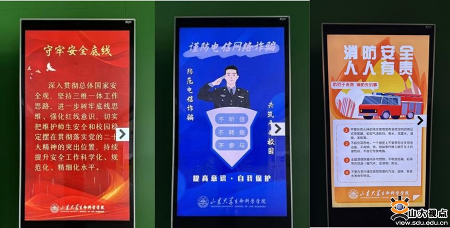 加强安全宣传,营造教育氛围。学院注重加强安全文化宣传引导,采用多种宣传形式,通过网站新闻、微信推文、楼宇海报、LED电子横幅等渠道全方位、多形式加强对安全文化的立体宣传,线上线下形成合力,在师生当中营造“人人讲安全”的良好氛围。