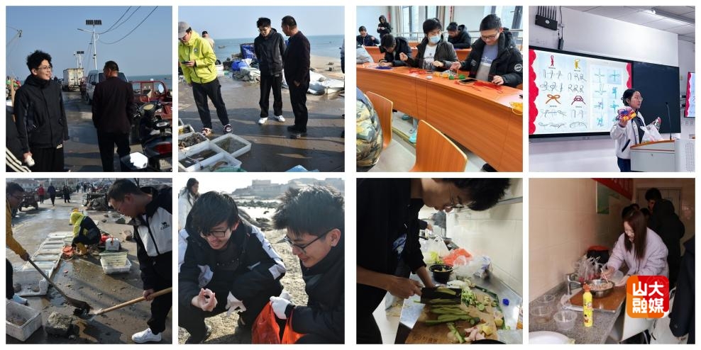 引导学生走出校门,开展广泛的劳动实践。学院将劳动教育与学生的日常学习生活相融合,鼓励同学们走出课堂、走出校园,开展劳动实践活动。23级密码1班前往杨家岭七沟二码头进行实地探访,通过与渔民对话,了解沿海劳动人民生活方式,进行码头、海滩清洁活动,增强班级凝聚力,强化同学们的环保意识;23级密码2班带领同学们了解中国结的起源和其历史渊源,学习中国结编制方法,体悟传统手工的文化底蕴,让古老智慧在青春的火花中焕发出勃勃生机;24级网安1班的八位的“大厨”亲自掌勺,可乐鸡翅、土豆炖牛肉...班级同学一起包饺子,用可口饭菜拉近同学距离,体验劳动乐趣;24级网安4班、23级网安2班走出宿舍,在校园内自发进行落叶清扫,体会劳动不易,加深对劳动的认识。