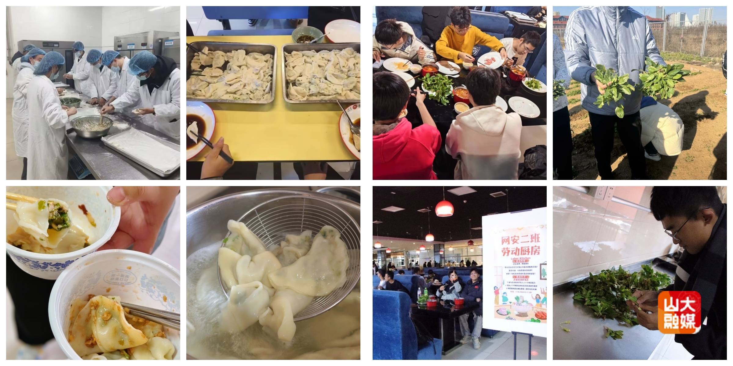 “从田野到餐桌”,23级网安1班和24级网安4班分别收获油菜、小白菜,用所获调制肉馅,在食堂、自助厨房一同包饺子。“菠”种梦想,“菜”摘希望,24级网安2班等待菠菜的收获,从摘菜洗菜择菜,到将干净菠菜放入火锅,同学们珍惜劳动成果,体验丰收快乐,增进同学情谊。