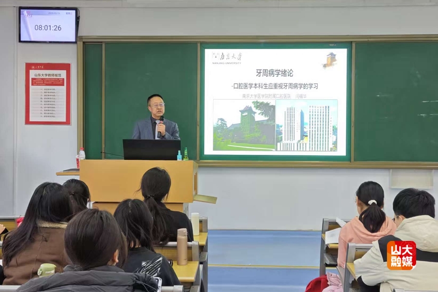 [本站讯]为助力培养最优秀的本科生,提高人才培养质量,2月19日,口腔医学院本科生专业核心课程《牙周病学》“主编进课堂”系列活动举行。本次活动邀请该课程第六版教材主编南京大学口腔医学研究所所长、闫福华教授进行了绪论的讲授。学校教学督导、院领导及教研所老师随堂听课,参与师生110余人。