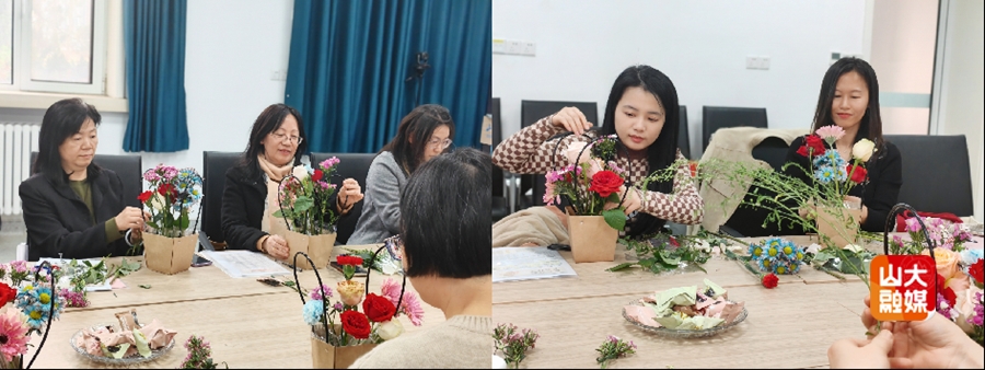 花香映笑颜,巾帼绽芳华。在节日来临之际,学院组织“花漾时光・悦享芳华”插花体验活动,吸引了来自药学院、公共卫生学院、齐鲁医学院等二十余位花艺爱好者参与。老师们充分发挥自己的创意与审美,一朵朵娇艳的玫瑰、康乃馨、小雏菊,在大家的巧手下,逐渐变成了一件件独具匠心的花艺作品,每一件作品都饱含着创作者对生活的热爱和对美的独特理解,展现出女教职工们优雅精致、充满热情的生活态度。