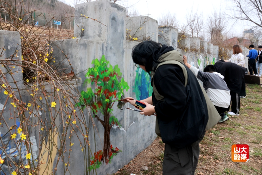 学院师生志愿者分工协作,一起刨土、培土、种植、浇水,栽植银杏树、栀子花株、桂花株、向日葵等苗木近百珠。学生在松土施肥、修枝剪叶中感受劳动的快乐、涵养勤劳的品格,共种绿植,美化校园。同时,学院还充分发挥产品设计专业优势,组织志愿者开展校园墙绘美化活动。