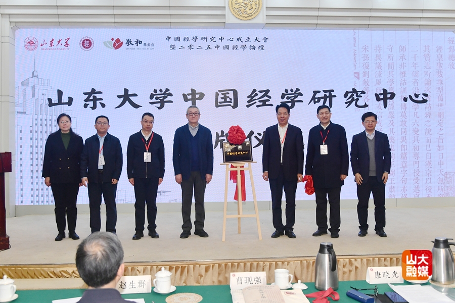 曹现强、康晓光等共同为山东大学中国经学研究中心揭牌。中国经学研究中心由南京师范大学文学院、山东师范大学齐鲁文化研究院、曲阜师范大学孔子文化研究院和山东理工大学齐文化研究院四个单位合作共建。中心成立后将加强学术交流,共同创办《中国经学研究》集刊,积极推动“中国经学”学科建设和经学研究共同体建设;建立健全经学人才培养体系,努力将经学中心打造成为经学研究与人才培养的新高地。
