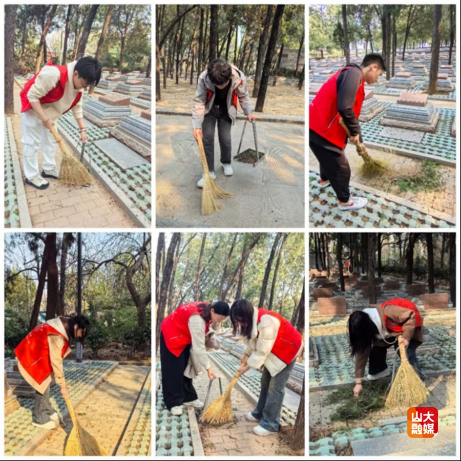 3月9日,集成电路学院19名志愿者前往济南烈士陵园开展主题清扫活动。志愿者们手持扫帚、抹布和垃圾袋,在负责人“每一寸土地都承载着英雄热血”的动员中列队出发。他们分组清扫陵园主道、台阶及纪念碑周边,弓背弯腰清理落叶杂物20余袋,轻拭12座烈士墓碑,动作郑重如抚历史丰碑。清扫结束后,全体志愿者肃立纪念碑前举行缅怀仪式,负责人总结道:“这不仅是环境维护,更是一堂生动的爱国主义实践课。”活动尾声,志愿者们接过负责人分发的柚子,有同学感慨:“亲手拂去先烈安息地的尘埃,更懂得今日安宁的珍贵。”
