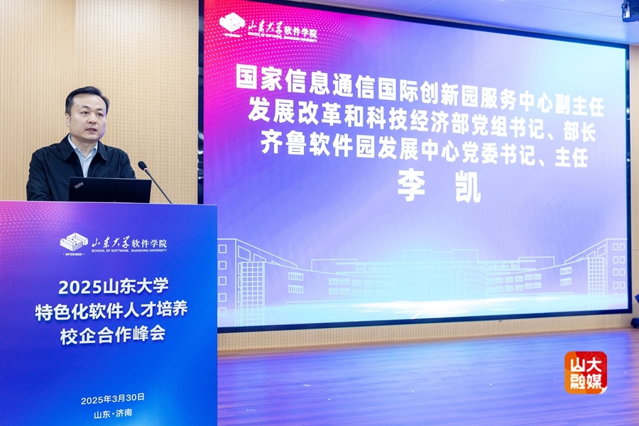 李凯回顾了济南市高新区、齐鲁软件园和山东大学联合共建软件学院、协同育人的措施与成果。他表示,未来将持续健全完善政校企沟通协调合作机制,通过为广大学子搭建与企业交流的桥梁,推动产教融合,共谋科技创新与产业融合新路径,共建软件产业人才新生态,培育更多优秀软件人才。