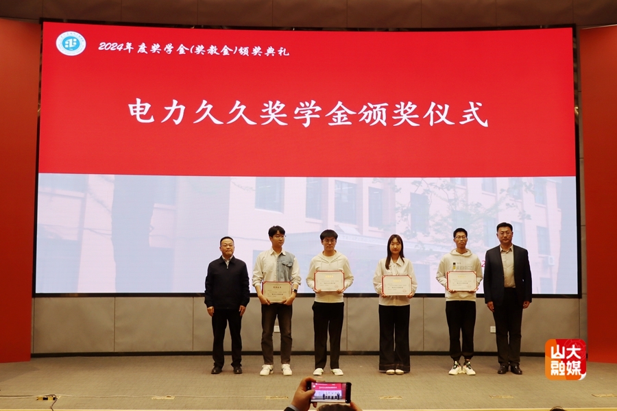 电气工程学院党委副书记王海华宣读了《关于表彰2024年度院评奖学金、奖教金获得者的决定》。朱德建与各捐助方代表共同为校评奖学金获奖同学颁奖。薛禹胜奖学金捐助方代表、国网电科院教培中心副主任张岩在致辞中勉励广大学子应发扬“一辈子办成一件事”的精神,为电力事业贡献力量。特高压奖学金捐助单位代表、国网山东省电力公司副总经理石岩表示,双方将共同为国家能源电力发展作出新的重大贡献。科汇奖学金捐助单位代表、山东科汇电力自动化股份有限公司党委书记王相安表示,希望广大同学积极锻炼综合能力,科汇公司将始终为优秀人才提供广阔的发展平台。