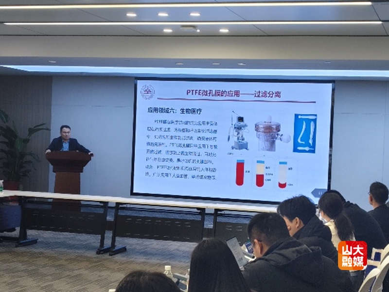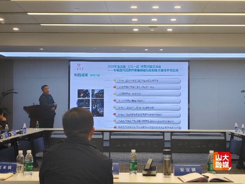 山东大学专家团队面向地方政府、省内投资机构及重点镇区和相关企业代表,重点推介四项引领性技术成果:多功能聚四氟乙烯微孔膜及纤维(王桂龙教授);超临界微孔发泡新材料(董桂伟教授);车载超高压碳纤维缠绕储氢瓶制备技术(朱波教授团队);多波段兼容电磁波吸收材料(刘久荣教授团队)。