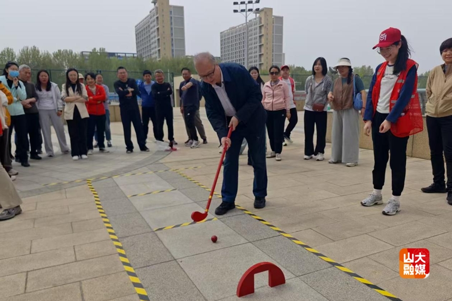 本次趣味运动会结合师生兴趣与实际情况设置了多个项目。在“沙包掷准”项目中,参赛者或躬身丈量最佳投距,或屏息凝神锁定靶心,手腕翻转间将重力与抛物线精妙编织。每一次沙包在空中划过的弧线,都承载着大家的期待。在“捶丸游戏”项目中,师生们手持梨形木槌,躬身凝视着地上的木球,如同棋手推演棋局般精心谋划。“双人踢毽子”项目考验着选手们的默契配合。两人一组,相互配合着用脚将毽子踢起。毽子在空中上下翻飞,选手们的脚步也灵活移动。“乒乓球接力跑”项目将速度与技巧完美结合。选手们用球拍托着乒乓球,快速奔跑着传递接力棒。当球不慎落地,师生立刻弯腰拾起,击掌互道再来,默契的配合激起全场的加油声浪。“两人三足接力”项目更是将团队协作精神展现得淋漓尽致。选手们两人一组,将相邻的腿绑在一起,喊着整齐的口号,步伐一致地向前冲去,合作共赢的团队精神在同学们之间悄然传递。“双人背部顶球接力”项目充满了挑战与欢乐。选手们背靠背夹着球,小心翼翼地向前移动。每一次球体颠簸都激发着更精准的调整,每回意外滑落都化作躬身拾起时的相视而笑。