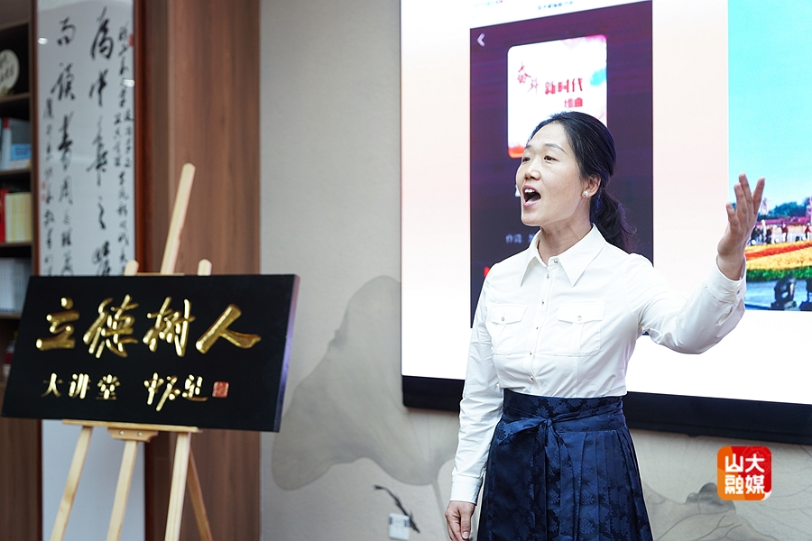 中共山东省委党校(山东行政学院)教授戚桂锋、省委党校图书和文化馆讲师郝秀芝现场演绎《难舍家国》《放开歌喉唱中华》曲目,以“盛世放歌”奏响时代强音,激励青年人建功新时代,争做新时代栋梁之材,引领师生在艺术浸润中深切感悟“奋斗”的时代内涵。