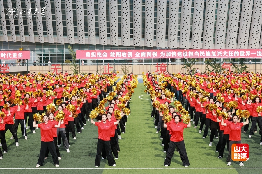 闭幕式上,900余名健美操专项课的学子共同演绎“刚柔并舞·韵起华章”大型团体操。来自五个校区的学生历经近一年的挥汗打磨,在四位健美操教师指导下,将街舞的酷飒、花球啦啦操的活力与八段锦的刚柔完美交融。