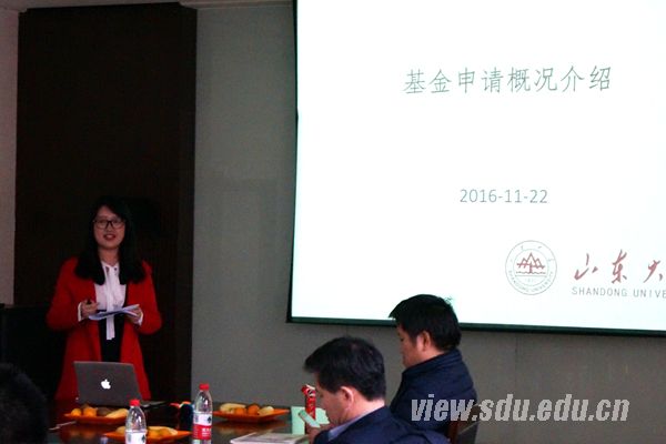 活动开始后,甘甜向大家介绍了基金申请概况,对国家自然科学基金和山东自然科学基金项目申请与管理工作的流程进行了详细解说,引发了青年老师、博士后以及高年级博士的浓厚兴趣。