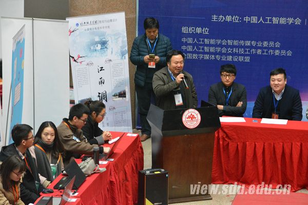 齐炳和在致辞中首先向来自全国各地的参赛者们致以真诚问候和热烈欢迎,并表达了他对此次竞赛的重视与对数字媒体专业未来发展的期望,鼓励同学们发挥想象,挥洒创意,在数字媒体领域开辟出一片新的天地。王国胤在致辞中肯定了此次竞赛对于学习数字媒体专业的大学生的重要性,认为比赛不仅为富有创意的学生们提供了一个展示才华的机会,更能激励越来越多的同学积极参与到数字媒体的创作中来。王国胤表达了他对此次竞赛的信心与对同学们的殷切期望,希望通过此次竞赛,能有更多的人了解、关注数字媒体技术专业,并为它的发展献出自己的力量。刘颖代表现场评审组发言。他简明扼要地向参赛者们简述了比赛的评审机制,表示每位参赛者都会有展示自己才华和创意的机会,保证了竞赛的公平性和参与性;祝愿参赛者们能在此次竞赛中取得佳绩,将数字媒体技术的魅力展现给每一个人。