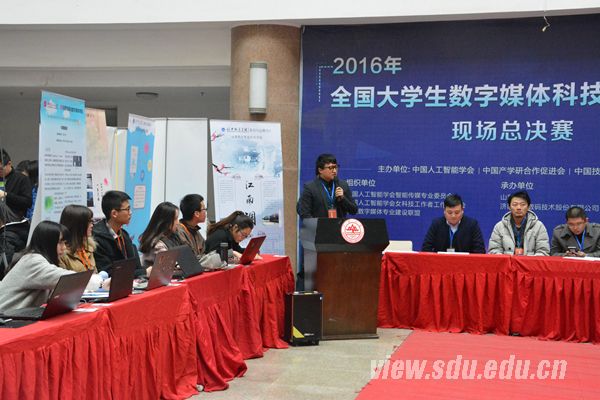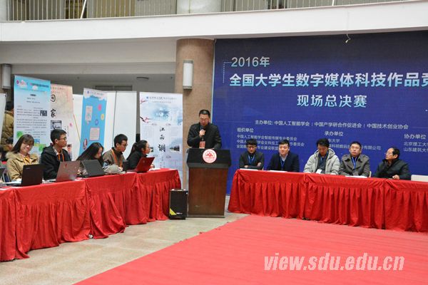 [本站讯]11月26日,第四届全国大学生数字媒体科技作品及创意竞赛全国总决赛开幕式在软件园校区举行。山东大学本科教务管理办公室主任、创新创业学院办公室副主任、副研究员齐炳和,中国人工智能学会副理事长、重庆邮电大学计算机学院院长王国胤,墨极(北京)影像制作有限公司视效总监刘颖出席开幕式。