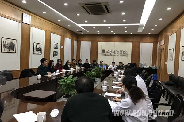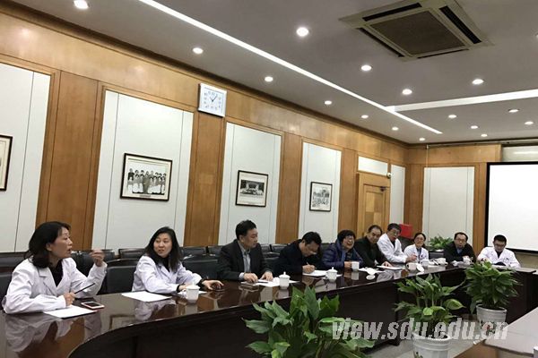 [本站讯]11月25日,山东大学临床医学院副院长王立祥、院团委书记薛冰等一行人莅临省立医院进行期中教学检查并召开座谈会。省立医院副院长肖伟、教育处处长王夏炜、科教部副主任隗晓红、本科生党支部书记袁园陪同检查活动。