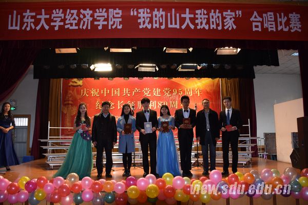 [本站讯]12月4日,庆祝中国共产党成立95周年、纪念长征胜利80周年,经济学院2016年“我的山大我的家”合唱比赛决赛在洪家楼校区举行。学院党委副书记李维林、齐山华出席并为获奖班级颁奖。
