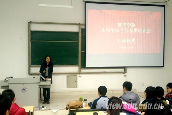 [本站讯]12月5日,管理学院本科生安全信息员培训会暨启动仪式在中心校区举行。院党委副书记石岩,辅导员高翠田、王栋华、郭超、史青芳出席了培训会。会议还邀请了护理协会会长胡恪贤和其他五名成员,2013级到2016级的各班安全信息员参加了培训会。
