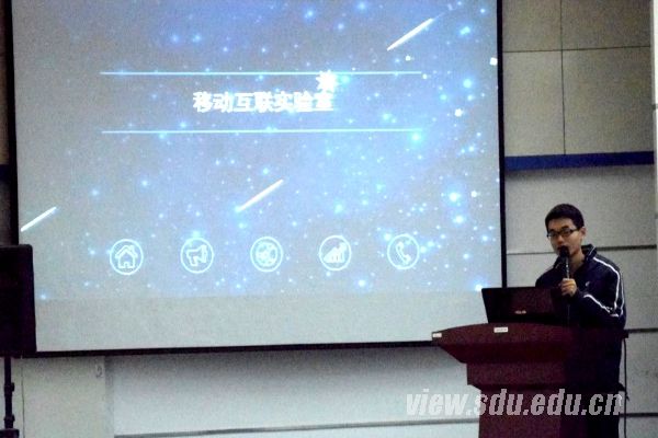 之后,戴鸿君就软件工程这一专业在国内外高校之间的差距进行了深入分析,他表示山大仍需追赶国内顶尖水平,学生要以项目为导向,争做开放创新型、具备高素质素养的准IT界人才。接着,搏创负责人李隆欣代表搏创发表讲话,学生科创实验室也相继展示了它们的特色并开放了网络窗口供学生了解。另外,本届英特尔杯一等奖获得者张雷在开幕式上展示了他们的获奖作品并讲解了作品创新之处。