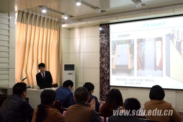 经过各学科内部选拔与推荐,全院共有来自5个学科的13位硕士生参加了本次竞赛。此次学术报告竞赛采取匿名报告的形式,分为自主展示与评委老师提问两个环节,教师评委与学生评委分别从选手报告的主题、内容、逻辑及科研成果的研究方法、应用前景、理论创新,PPT版式、语言表达、现场问答、时间控制等方面打分,最终共同评选出此次硕士研究生学术报告竞赛的佼佼者。竞赛过程中,参赛同学分别对于自己的代表性研究成果进行了讲解和演示,有参赛同学针对旧式剪力墙缺点提出适应工业化需要的叠合剪力墙,也有参赛同学对地铁盾构隧道下穿建筑物进行了沉降分析,其中不乏大胆的理论推断、严谨的公式推导、详尽的科学实验以及广泛的应用研究。有的成果已形成多篇SCI论文并发表,还有成果已成功应用到实际工程中并取得良好经济社会效益。参赛同学展示结束之后,李传奇与孙玉玲分别就此次学术竞赛进行了指导和点评,同时鼓励同学们要踏实学知识,潜心做科研,在以后要更加积极的参加此类学术竞赛与交流活动。