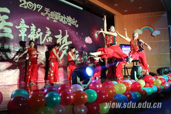 [本站讯]12月25日,主题为“医章新启,执梦远航”的基础医学院2017年元旦师生联欢晚会于趵突泉校区举办。晚会由基础医学院党委、团委以及工会主办。基础医学院院长易凡,基础医学院党委书记赵福昌,公共卫生学院党委书记李士保,医药卫生管理学院直属党支部书记李雨嘉,基础医学院副院长高鹏,齐鲁医学部党工委副书记陈鑫,齐鲁医学部研究生处副处长李晶晶,基础医学院党委副书记李玉蓉,临床医学院团委书记薛冰,护理学院办公室主任曹源,基础医学院办公室主任郭春以及各学院团委老师出席了本次晚会。