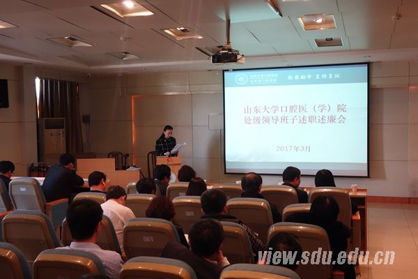 [本站讯]3月9日,口腔医学院举行2016年度处级领导班子述职述廉会议,院长徐欣与院党委书记赵华强分别代表领导班子作述职工作报告与落实党风廉政建设责任制情况报告。