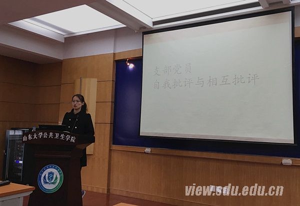 [本站讯]3月13日下午,公共卫生学院2015级专硕党支部在趵突泉校区召开了“两学一做”党员民主评议会议。会议由党支部书记卞伟玮主持,并请到了学院党委委员周成超做督导,2015级专硕党员全体参与。
