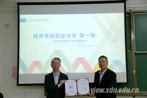 [本站讯]3月22日,为响应国家“大众创业、万众创新”的号召,为学生营造创新创业的良好氛围,由创新创业学院主办、经济学院承办的第一期创业沙龙系列讲座在兴隆山校区举办。本次讲座邀请得厚资本创始合伙人、全国大学生互联网+创新创业大赛专家委员会专家、第一届、第二届全国大学生互联网+创新创业大赛省赛、国赛评委、经济学院校友张伟民担任主讲嘉宾。院党委副书记齐山华出席并为张伟民颁发创业导师聘书。沙龙由院团委书记王永军主持。 张伟民以“如何在互联网+大赛中取得好成绩”为主题,结合亲身经历和具体实例,就创新创业与经济学院师生做了分享与交流。他从创新创业教育和高等教育的关系谈起,让同学们体会到创新创业的重要性。他介绍了“互联网+”大赛的开放性和价值性,表示市场的标准就是比赛的标准,并为同学们提供了通用技术和基础设施方面的建议。在讲解两个维度一个工具,即消费升级、产业升级和商业模式时,他以生活中最常见的方便面为例,向同学们展示了消费升级是新技术遇到新人类引发的消费价值链条的重塑的全新理念,鼓励大家通过商业模式的演进去革新和改进产品,细分目标客户,挖掘点子价值。最后,张伟民耐心地为在场同学解答了关于“互联网+”大赛的一些疑问,鼓励同学们在认真读书的同时关注生活,注重创新。本次沙龙环环相扣,层层深入,为正在准备“互联网+”大赛的同学们指点了迷津,也为经院学子提供了良好的创业指导和服务。 本学期,经济学院成立了学生创新创业服务中心,并与创新创业学院联合举办系列创业沙龙,引导更多的学生参与到创新创业活动中来,培养创新意识,提升创新能力,增强创业热情,把学生培养为社会创新型人才。