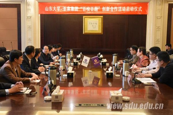 齐炳和表示,校企合作和产学研融合一方面能够促进学生的理论应用于实践,另一方面也有助于企业解决实际问题,山东大学下一步将会积极鼓励校企合作,推动创新创业教育的开展。候轲在致辞中祝贺山东大学代表队顺利入围,并介绍了教育部开展首届“百校百题”应用型创新课题(财税领域)大赛的重要意义,对山东大学与圣泉集团的合作给予厚望。团队领队、山东大学经济学院副院长石绍宾副教授介绍了确定选题的过程,指导教师经济学院李文教授和汤玉刚副教授分别介绍了课题研究框架和拟解决关键问题等。张亚玲女士肯定了此次合作的积极意义,对双方合作给予高度肯定并对课题研究充满信心。山东大学经济学院课题组全体成员参加启动仪式。