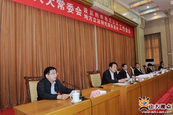 [本站讯]5月4日至5日,山东省人大常委会在济南召开设区的市地方立法暨地方立法研究服务基地工作会议,传达学习全国人大常委会法工委召开的设区的市地方立法工作座谈会精神,总结2016年省设区的市地方立法工作和地方立法研究服务基地工作,研究部署2017年工作任务。省人大常委会副主任夏耕出席会议并讲话,法工委主任周杰主持。山东大学副校长、省人大常委会山东大学立法研究服务基地主任胡金焱参加会议并作大会发言。