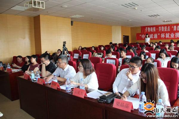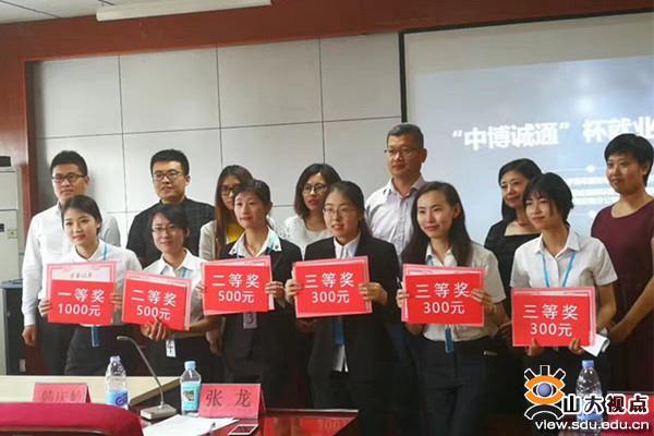 [本站讯]5月14日,经济学院在中心校区举办“中博诚通”杯就业挑战赛决赛。此次大赛面向省内四所高校开展,有6位学生学进入决赛。大赛邀请了浪潮集团云会计事业部运营经理杨巍巍,齐鲁晚报·齐鲁壹点运营部总监韩庆岭,山东归仁生物科技有限公司总经理石礼发,中博诚通公司市场部经理张龙,以及前程无忧招聘经理梁晶晶担任评委。东亚银行代表,经济学院团委相关人员担任嘉宾。