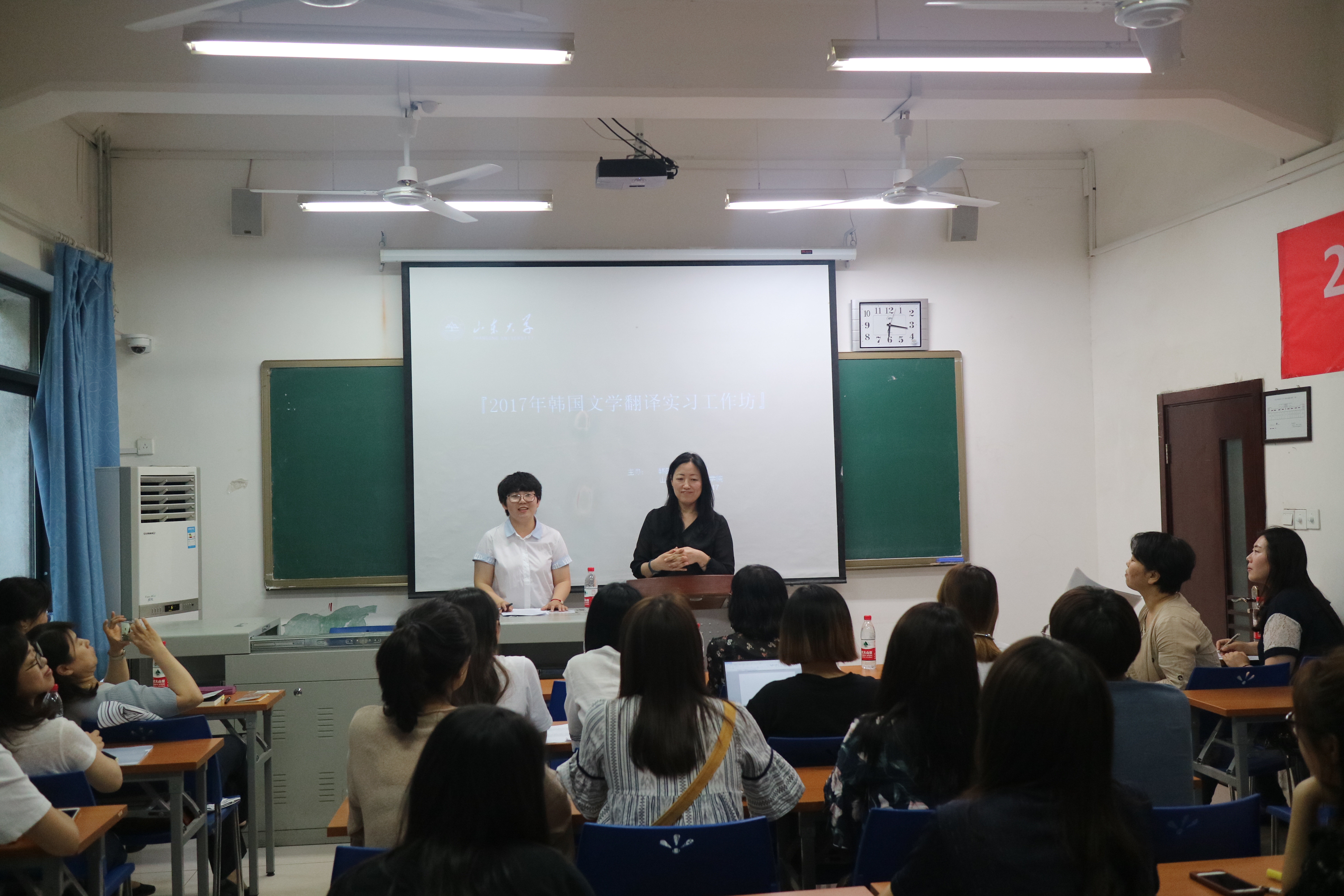 [本站讯]5月17日,韩国作家姜英淑做客外语学院,为师生作了关于写作与翻译的讲座。讲座由外语学院朝鲜语系主任韩梅教授主持。