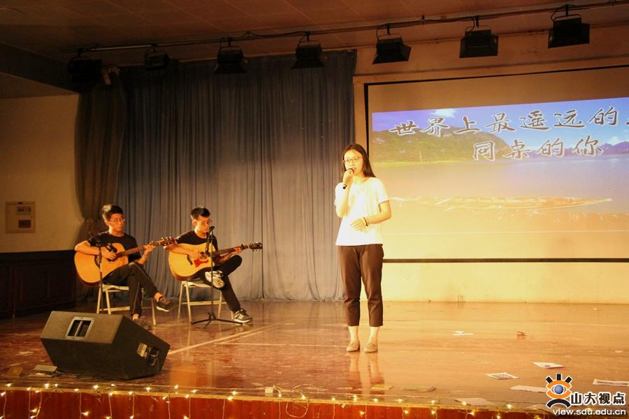在一段各班级这两年来学习和生活的剪影的展示中,晚会拉开序幕。晚会节目精彩纷呈,活力四射,同学们载歌载舞,用青春和激情为观众带来一场视听盛宴。歌曲串烧《小幸运》、《同桌的你》和《换大米》,既有同学们青春活力的展现,还有依依深情的流露;由三班和四班带来的歌舞剧《告白气球》和《一生有你》,表现出班级作为一个大家庭的强大凝聚力;小品《板报上的王八》逗得同学们欢笑不止,作品用一个反面教材告诉大家做人做事要务实,不要溜须拍马走捷径;另外能源与环境系统工程基地班和五班分别带来朗诵《我的滑板鞋》和《世界上最远的距离》,一个幽默风趣活力十足,一个饱含深情,分别展现出班级活泼开朗和团结互助相亲相爱的一面。精彩的表演期间还穿插了“猜图排序”、“机密传递”和“数钱”等互动节目,同学们积极参加,相互协助,在顺利完成游戏的同时增进了彼此的默契和感情。