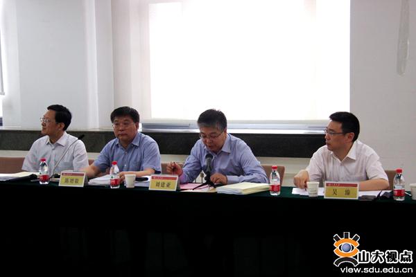 [本站讯]5月21日,山东大学2017年数学学科、统计学科研究生学位授权点评估会在中心校区举行。中国科学院院士、中国科学院大学副校长、中科院数学与系统科学研究院学术院长、评估专家委员会组长席南华,山东大学副校长刘建亚出席会议。