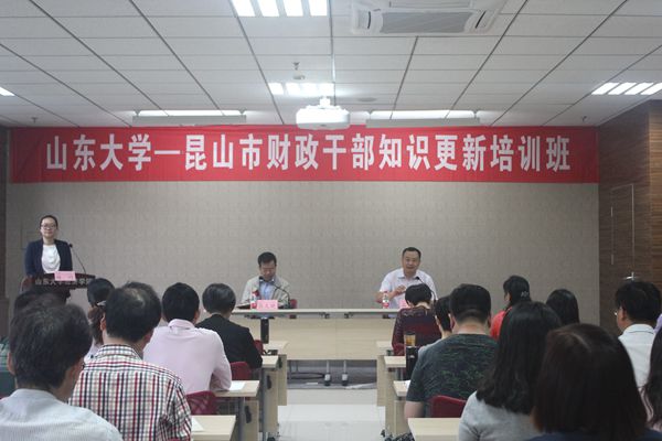 [本站讯]6月6日,山东大学——昆山市财政干部知识更新培训班开班典礼在中心校区举行。昆山市财政局副局长张文晓、山东大学经济学院副院长石绍宾出席典礼并致辞。