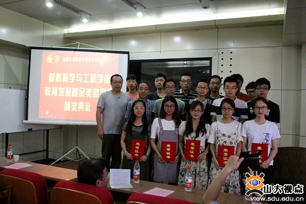 [本站讯]6月8日,材料学院在千佛山校区办2016年度山东大学材料科学与工程学院教育发展基金奖助学金颁奖典礼。学院共46名学生获得奖助学金。材料学院校友济南昌达热工有限公司董事长张学礼、济南方德利模具有限公司董事长赵生彦、济南长城空调公司副总经理管欣;材料学院党委书记秦承涛,党委副书记张强,副院长吕宇鹏、姜炳刚等出席颁奖典礼。