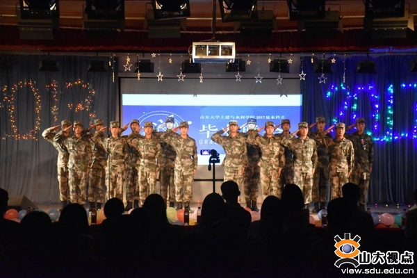 开场舞啦啦操正式拉开了晚会的序幕,精彩纷呈的节目逐一上演。2012级建筑班的一曲《你曾是少年》勾勒出了当年青涩校园的生活图景,迅速调动起全场的气氛;话剧《罗密欧与朱丽叶》独辟蹊径,以反串的形式引得全场观众捧腹;而歌曲《当那一天来临》通过铿锵有力的歌声展示出了国防生热血男儿的风采;2013级地空班带来的舞蹈《我真的很不错》,则以轻松幽默的风格冲淡了大家离别的感伤。晚会接近尾声时,2013级建筑班为毕业生制作的一段记录兴隆山生活点点滴滴的短视频将观众引入到回忆当中,引起了全场的共鸣。晚会最后,辅导员李垚从学长的视角与毕业生分享了自己作为辅导员的感。