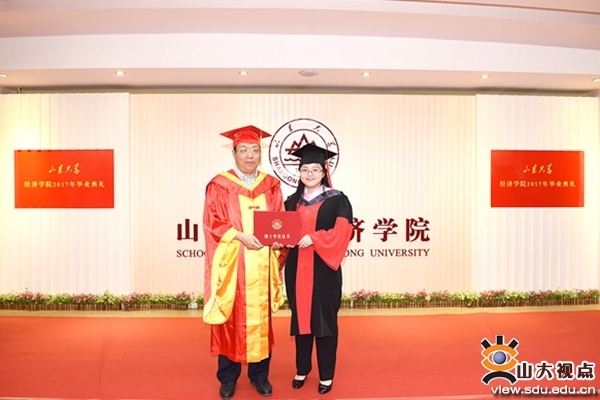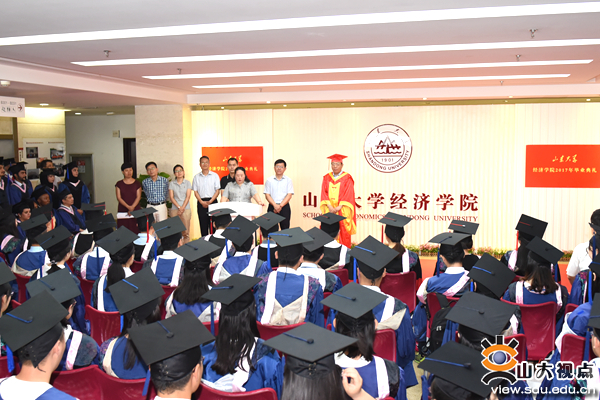 [本站讯]6月16日,经济学院在中心校区举行2017届学生毕业典礼。院长李长英为每位毕业生颁发了毕业证书并合影留念,经济学院党委书记王秀丽代表学院致辞。典礼由学院副院长余东华主持。