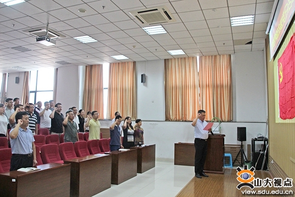 大会伴随着《国歌》拉开帷幕。李建平首先带领全体党员重温誓词,大家举起右拳,面向党旗,庄严宣誓。庄严肃穆的宣誓活动,使每一位党员再一次接受心灵的洗礼。随后,全体党员学习黄大年同志的先进事迹,李建平传达了习近平总书记对黄大年同志先进事迹作出的重要指示,张倩带领大家学习了相关材料。会上播放了黄大年同志先进事迹专题片《大年》,黄大年同志从留学到归国报效祖国,并为之献身的感人事迹让在场的人员为之动容。最后,李建平传达了《中共山东大学委员会关于中央第七巡视组反馈意见的整改工作方案》,部署学院整改工作。李建平表示,党员领导干部带头,高度重视巡视整改工作,各党支部组织党员认真学习习近平总书记关于巡视工作重要讲话精神,抓住巡视整改的有利契机,从我做起,从自身做起,把自查自纠认认真真地做好,扎扎实实地做好。会上还就学院近期几项具体工作作了说明。最后,在庄严的《国际歌》声中大会圆满结束。