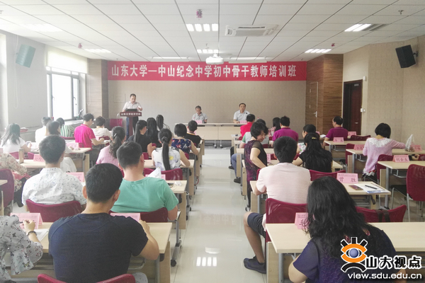 [本站讯]7月3日,由山东大学经济学院和中山纪念中学联合主办的山东大学-中山纪念中学初中骨干教师培训班开班典礼在中心校区举行。中山纪念中学初中部主任吴设伟、山东大学经济学院副院长石绍宾出席开班典礼。