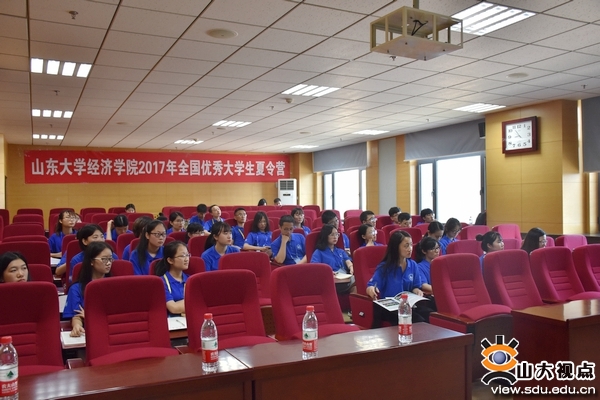 经济学院2017年全国优秀大学生夏令营为期4天,营员们将参与学术报告、齐鲁文化体验、夏令营考试、论文交流、分组面试、小组成果展示等活动,旨在为全国高校优秀大学生提供了解山大和提高自身综合素质的平台,吸引更多优秀研究生生源加入山东大学经济学院。来自全国多所重点高校的30多名营员参加了开幕式。