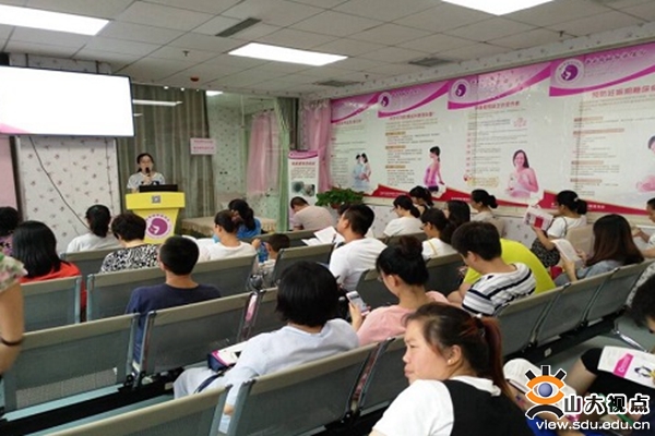 “洁白笑容”团队队员在社区居委会与工作人员商议后进行一系列准备活动,包括投影仪调试、挂置横幅、准备纪念品和小礼物等。宣讲由两个队员前后进行,主题分别为“备孕期和妊娠期妇女的口腔保健知识”和“儿童口腔保健知识知多少”。尤其是在儿童口腔保健知识宣讲环节,台下的小朋友们向队员分享了在幼儿园老师所讲述的如何爱护好自己的牙齿,并且跟随示教视频,认真学习了儿童的“圆弧刷牙法”。几个小问题穿插在宣讲中,增加了队员与居民的互动,伴随小礼品的发放,现场气氛也活跃起来。宣讲结束后,队员与个别居民进行了简单的口腔问题交流。