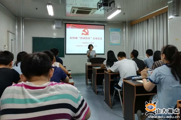 [本站讯]7月27日,临床医学院驻齐鲁医院本科生(含七年制)学生党支部开展暑期主题党日活动。党支部书记宋亚静以“如何做一名‘四讲四有’合格学生党员”为主题为全体党员上了一堂专题党课。